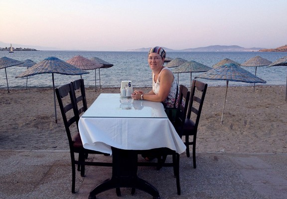 Yenifoca is a quiet little town in Turkey — lots of fishing, few tourists. The beach and Aegean sea are beautiful, and the sea is very cold. However, it’s very hot here, so a nice daily dip is refreshing.